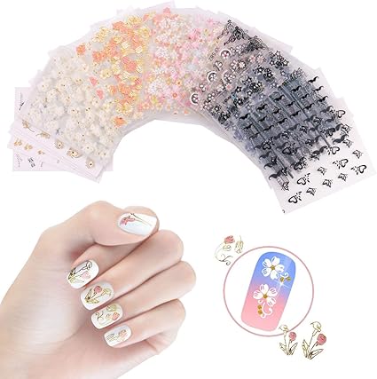 50 Fogli Adesivi Per Unghie 3d Adesivi Per Unghie Autoadesivi Disegni Per Nail Art Per Donne Ragazze Fiori Vari Cranio Di Halloween Farfalla Stelle Baffi Laccio Amazon It Bellezza