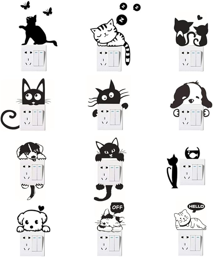 Wall Switch Stickers Cat Dog Light Switch Stickers Funny Animal Wall Decals For Bedroom Living Room Black 12 Pcs Amazon Co Uk Kitchen Home