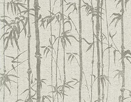 Parati Disegni Orientali Con Canne Di Bamboo Fango Su Fondo Tortora Effetto Tessuto Canapone Naturae 30522 Amazon It Fai Da Te