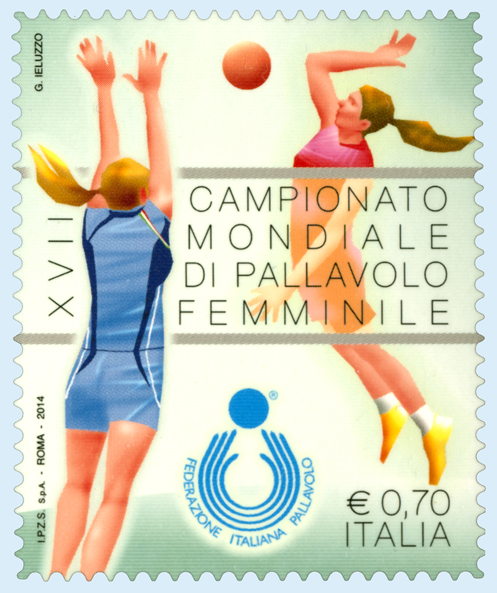 Un Francobollo Celebra Il Xvii Campionato Mondiale Di Pallavolo Femminile Stretto Web