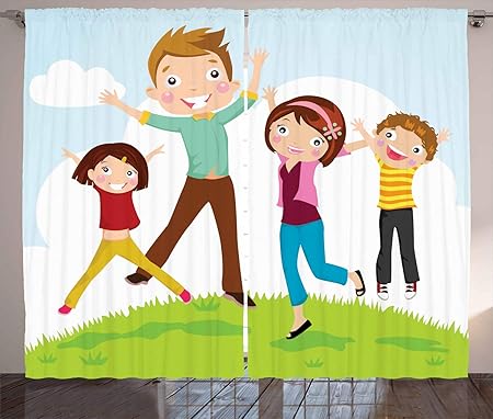 Abakuhaus Famiglia Tenda Felice Mamma Papa E Bambini Salotto Camera Da Letto Tende Per Finestra Due Pannelli Set 280 X 245 Cm Multicolore Amazon It Casa E Cucina