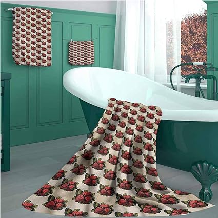 Linyangpttowel Set Di 3 Asciugamani Da Bagno In Cotone A Forma Di Fragola Disegni A Mano