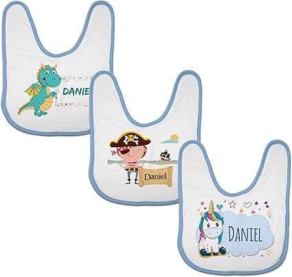 Lolapix Bavaglini Neonato Pack 3 Baviligini Personalizzati Con Nome Testo Regali Appena Nati Vari Disegni Da Scegliere Pirati Drago Unicorno Blu Amazon It Casa E Cucina