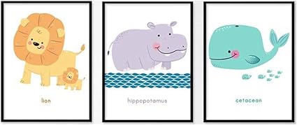 Quadri Per Cameretta Dei Bambini Con Disegni Animati Di Piccolo Leone Balena Cavalluccio Marino Senza Cornice 30x40cm Amazon It Prima Infanzia