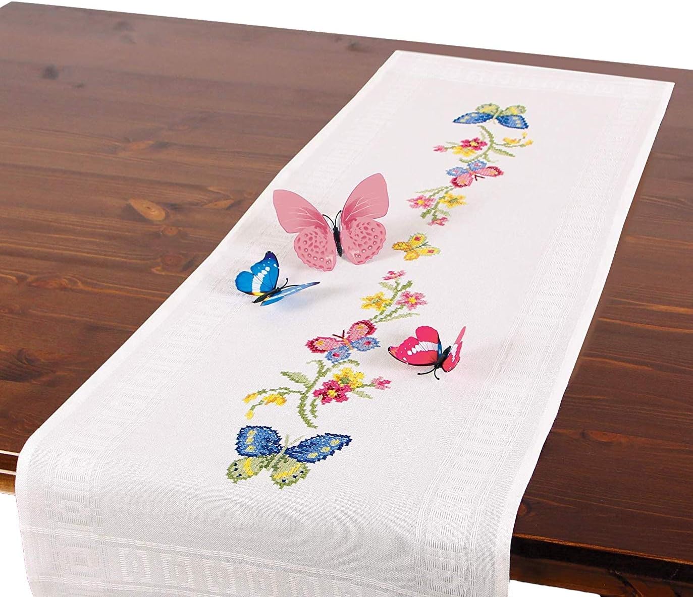 Tischdeckenshop24 Kit Da Ricamo Farfalla Runner Da Tavola Set Completo Per Tovaglia Da Ricamare Con Disegno Prestampato Set Da Ricamo Con Disegno Da Ricamare A Punto Croce Amazon It Casa E Cucina