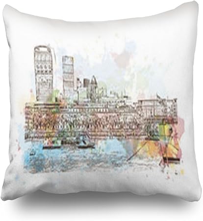 Lolyeah Federe Per Cuscini Decorativi Con Disegni Ad Acquerello Citta Londra Regno Unito Edifici Velluto Grey 50 X 50 Cm Amazon It Casa E Cucina