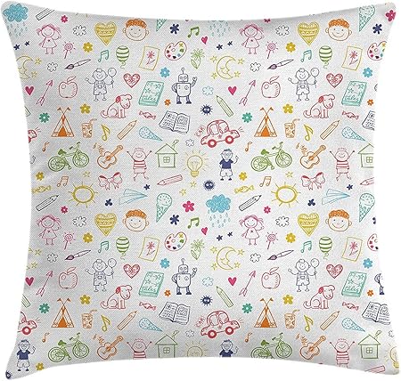 Jamirtyroy1 Federa Per Cuscino Motivo Disegni Di Bambini Tenda Da Sole Varie Altre Cose Adatte Ai Bambini Federa Decorativa Quadrata 61 X 61 Cm Multicolore Amazon It Casa E Cucina