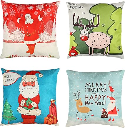 Kesote Federe Per Cuscino Di Natale Federa Con Disegni Di Babbo Natale E Renna Federa Di Lino Per Natale Set Di 4 43 X 43cm Amazon It Casa E Cucina