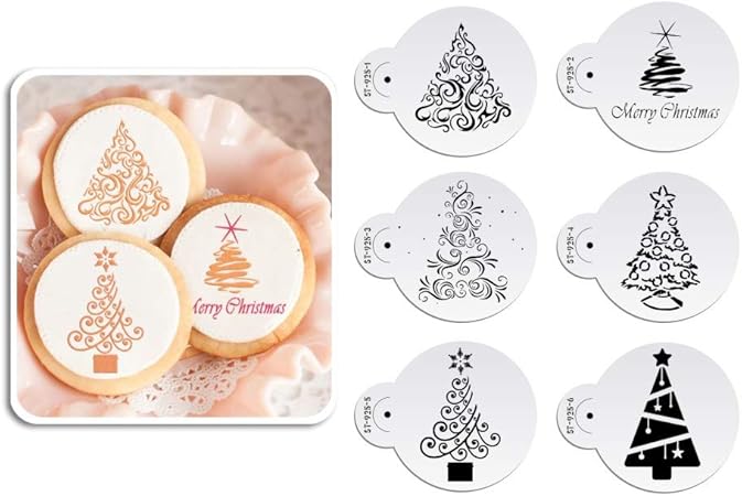 Art Kitchenware Set Di 6 Stencil Per Biscotti A Motivo Albero Di Natale Per Decorare Torte Per Pittura Aerografo E Ghiaccia Reale 6 Pezzi 7 Cm Amazon It Casa E Cucina