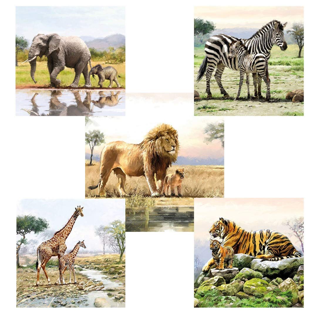 Confezione Da 10 Pezzi 2 Tovaglioli Ciascuno Di 5 Diversi Disegni Meravigliose Bestie Selvatiche Tovaglioli Per Decoupage 3 Strati Tigers On The Loose 33 X 33 Cm Hobby Creativi Casa E Cucina