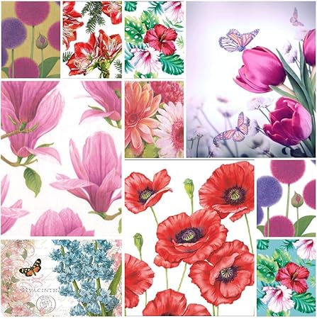 Confezione Da 20 Tovaglioli Per Decoupage A 3 Strati 33 X 33 Cm Motivo Fiori 2 Tovaglioli Ciascuno Di 10 Diversi Disegni Amazon It Casa E Cucina