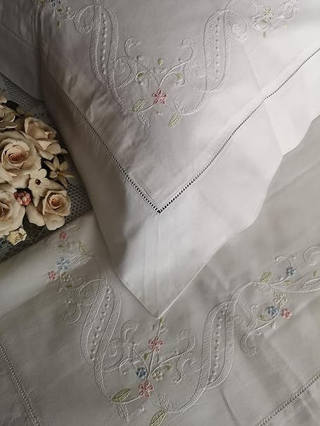 I Disegni Di Madeira Eleganti Lenzuola In Puro Cotone Percalle Con Ricamo Punto Pieno A Mano Amazon It Casa E Cucina