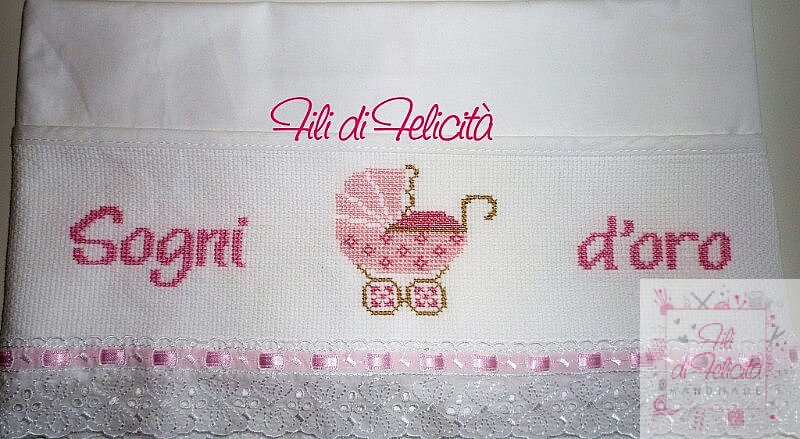Lenzuolino Per Carrozzina Ricamato Cucito E Ricamo A Punto Croce