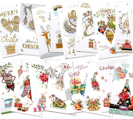 Jinsu 16 Pezzi Biglietto Natalizio Di Auguri Disegni Misto Natale Auguri Biglietti Con Buste Cartoline Di Natale Con Pagine Vuote All Interno Per Natale E Capodanno Amazon It Cancelleria E Prodotti Per Ufficio