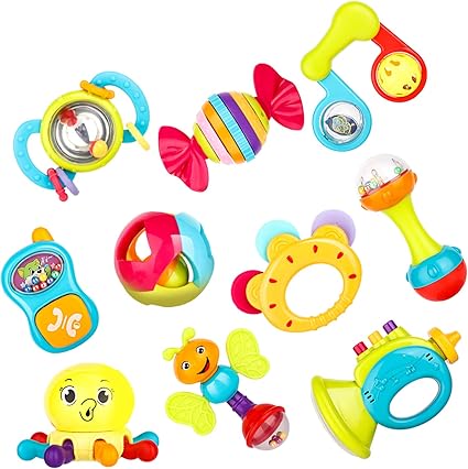 Zooawa Giocattoli Di Sonagli Giocattoli Da Dentizione Per Bamini 10 Pezzi Sonagli Con Manico Giocattoli Educativo Regalo Per Neonato Bambini Bambine Colorato Amazon It Prima Infanzia