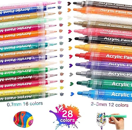 Xiapia Penne Vernice Acrilica 28 Colori Disegni Per Arti Pennarelli Per Liquidi Set Fissi Per Rocce Di Vetro Lavagna Ciottoli Pittura Su Legno Mestieri In Tessuto Di Ceramica Amazon It Casa E Cucina