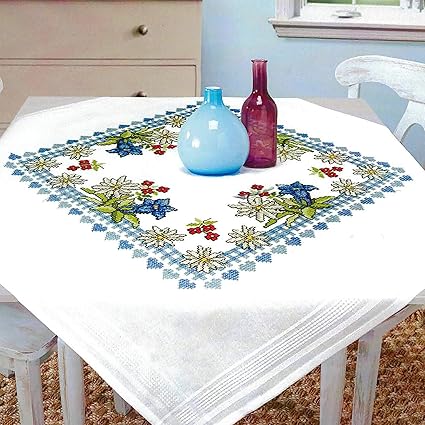 Kamaca Kit Da Ricamo A Punto Croce Con Disegno Preparatorio Con Motivo A Fiori Alpini Tovaglia In Cotone Di Grandezza Media 80x80 Cm Amazon It Casa E Cucina