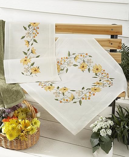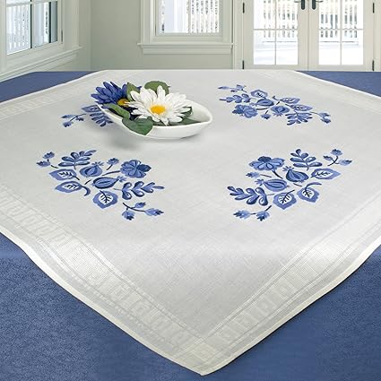 Kamaca Kit Per Ricamare Una Tovaglia A Punto Croce Motivo Fiori Tela Con Disegno Prestampato 80