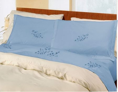 Centesimo Web Shop Completo Lenzuola Letto Di Flanella Ricamata E Smerlata Con Ricamo Floreale E Smerlo Matrimoniali Due Piazze Due Posti Matrimoniale Fiori Matrimoniale Azzurro Amazon It Casa E Cucina