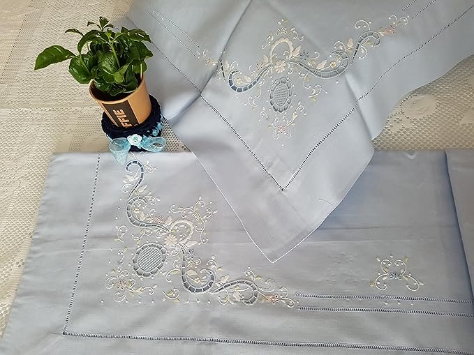 Set Di Lenzuola E Federe Casa E Cucina Matrimoniale Azzurro Centesimo Web Shop Completo Lenzuola Letto Di Flanella Ricamata E Smerlata Con Ricamo Floreale E Smerlo Matrimoniali Due Piazze Due Posti Matrimoniale