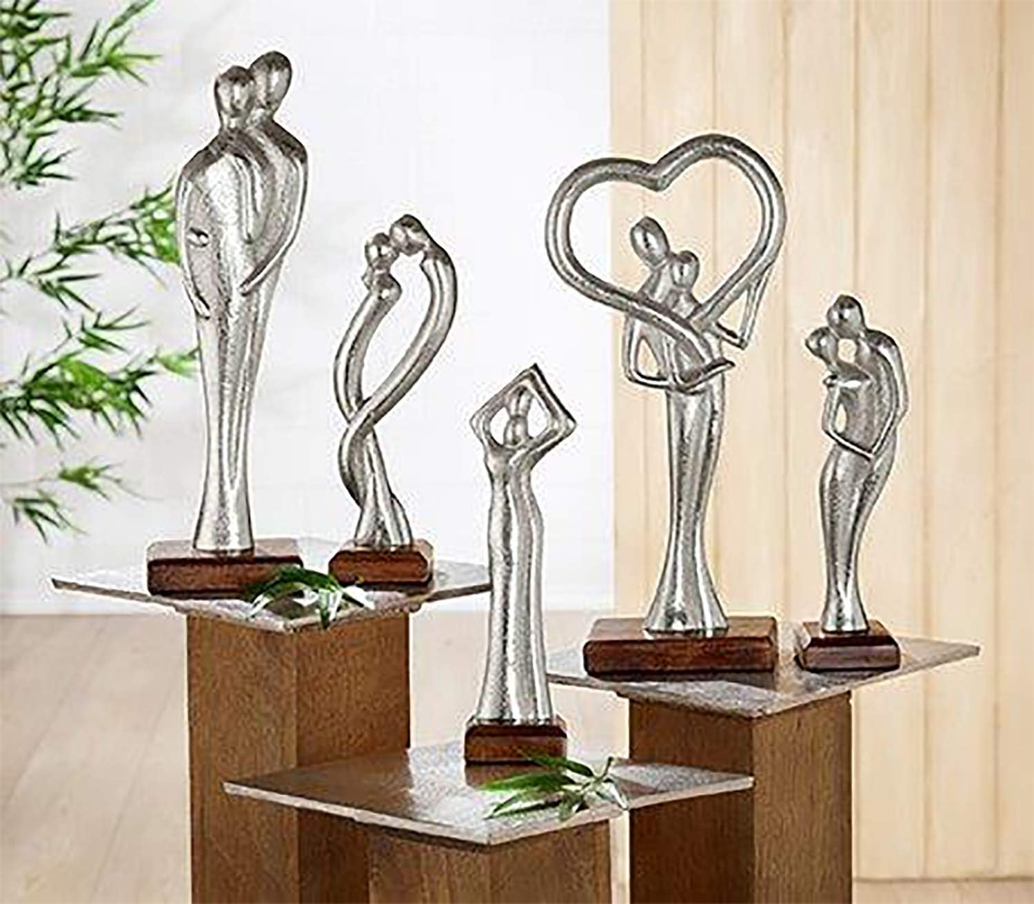 Gilde Scultura Moderna In Stile Deco Per Gli Amanti Dellalluminio E Del Legno Di Mango Su Altezza Base 30 Cm Statue Accessori Decorativi