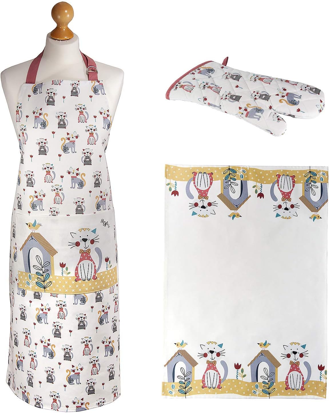 Set 3 Strofinacci Da Cucina Grembiule E Guanto Da Forno Elegante Disegno Di Gatto Idee Regalo Donna Originale Per Gli Amanti Dei Gatti E Cuochi Amazon It Casa E Cucina