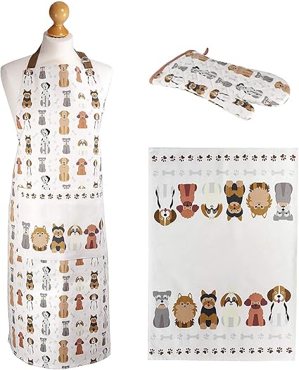 Set 3 Strofinaccio Da Cucina Grembiule E Doppio Guanto Da Forno Disegno Divertenti Di Cani Idee Regalo Donna Originale Per Gli Amanti Dei Gatti E Cuochi Amazon It Casa E Cucina
