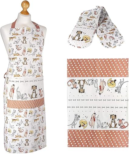 Grembiule E Guanto Da Forno Spotted Dog Gift Company Set 3 Strofinacci Da Cucina Disegno Divertenti Di Cani Idee Regalo Donna Originale Per Gli Amanti Dei Gatti E Cuochi Grembiuli Tessili Da