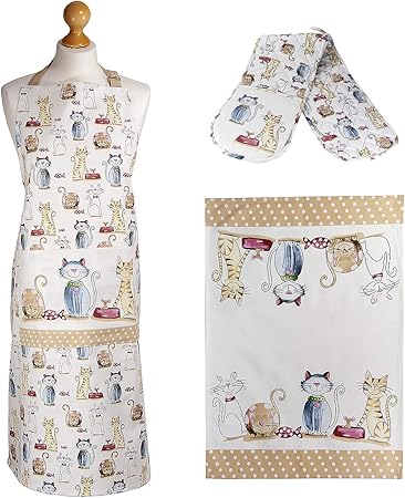 Set 3 Strofinacci Da Cucina Grembiule E Doppio Guanto Da Forno Bel Disegno Di Gatti Idee Regalo Donna Originale Per Gli Amanti Dei Gatti E Cuochi Amazon It Casa E Cucina