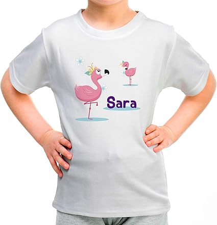 T Shirt Fenicottero Personalizzata Con Nome Testo Regali Per Bambini Personalizzati Vari Disegni E Colori Tra Cui Scegliere 100 Cotone Fenicottero Amazon It Casa E Cucina