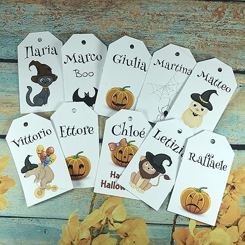 10 Cartellini Tag Bigliettini Personalizzati Halloween Con Nomi Stampati 10 Disegni Esclusivi Per Segnaposto Biglietti Per Regali Decorazioni Casa Amazon It Handmade