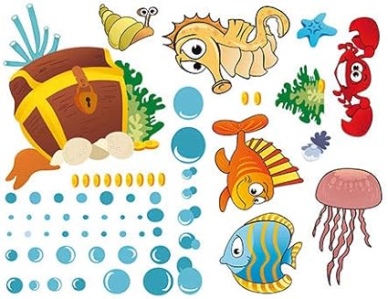 Adesivi Murali Bambini Adesivo Decorativo Cameretta Bambini Pesciolini In Fondo Al Mare Corallo Granchio Forziene Con Tesoro Caccia Al Tesoro Disegni Decorativi Wall Stickers Decorativo Adesivo Murale Decorazione Cameretta Nursery Stickerdesign Amazon It