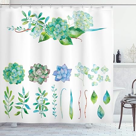 Piante Grasse Tenda Doccia By Ambesonne Disegno Floreale Raccolta Di Foglie E Fiori Acquerello Stampa Botanica Disegno Tessuto Arredo Bagno Set Con Ganci Multicolore Tessuto Multi 1 69w X 70l Amazon It Casa