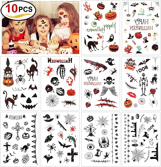 Howaf Halloween Finti Tatuaggi Temporanei Per Bambini 180 Simpatici Disegni Tatuaggi Temporaneo Adesivi Per Bambini Festa Di Halloween Sacchetti Regalo Vampiro Zucca Pipistrelli Mostro Strega Skull Amazon It Giochi E Giocattoli