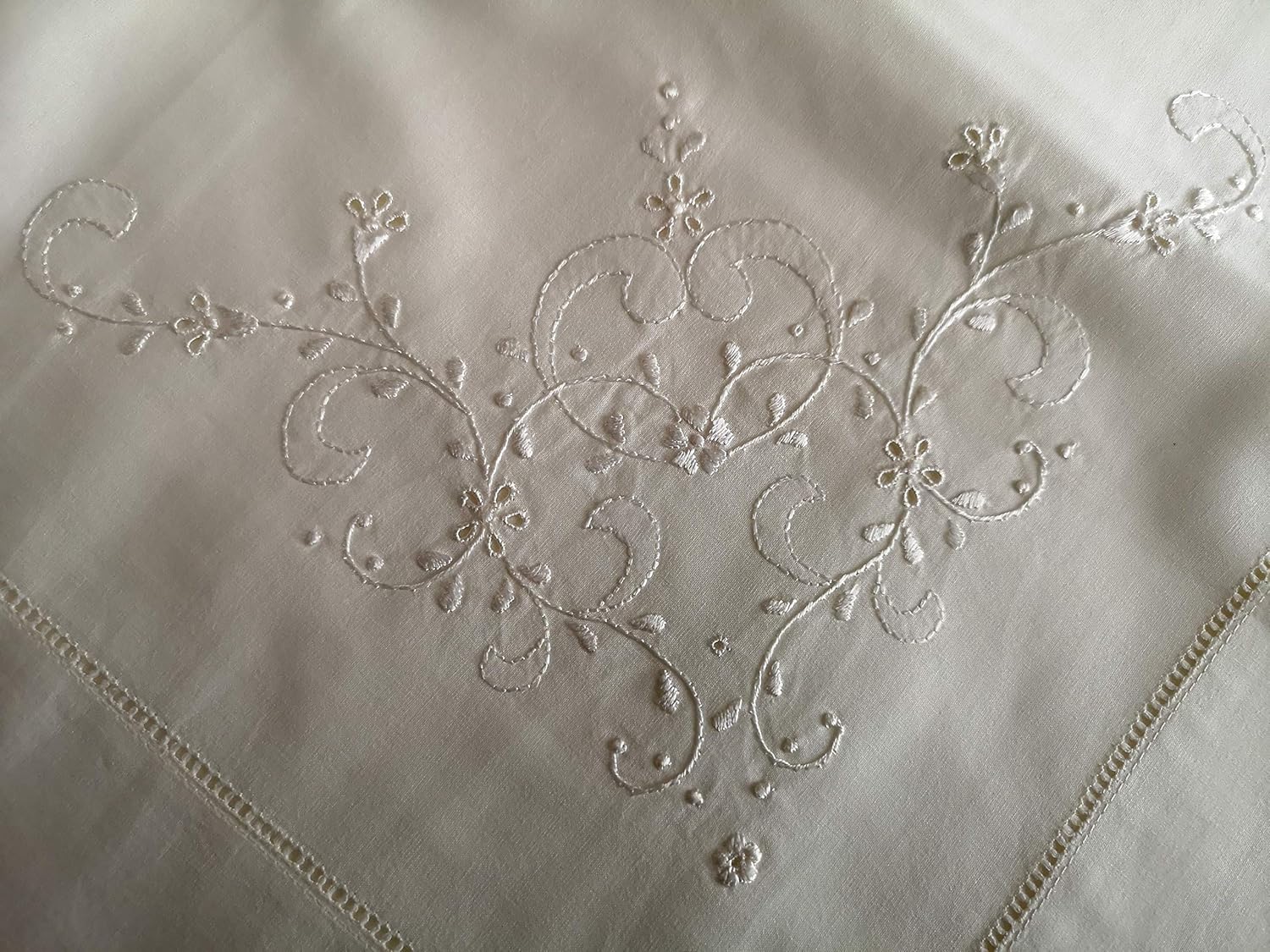 I Disegni Di Madeira Lenzuola Puro Cotone Percalle Con Ricamo Punto Pieno In Filo Seta A Mano Crema Amazon It Casa E Cucina