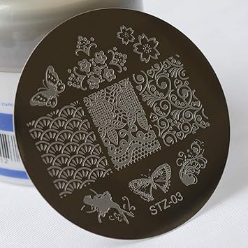 1 Pz Nuovi Disegni Rotondi In Acciaio Inox Immagine Fai Da Te Stamping Nail Art Piatti Modelli Stencil Sastza03 Amazon It Bellezza