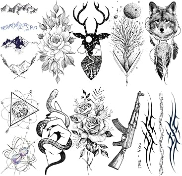 Laroi 10 Fogli Autoadesivo Tatuaggio Temporaneo Adulti Cervo Volpe Nero Pianeti Fiore Montagna Geometria Falso Serpente Mani Uomo Catene Gioielli Ak Pistola Tatuaggi Temporanei Donna Bracciali Tatoos Amazon It Bellezza