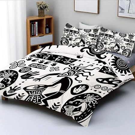 Set Copripiumino Figure Di Disegni Rupestri Preistorici Con Oggetti Tribali Simbolici Totem Sciamano Tema Decorativo Beddin 3 Pezzig Set Con 2 Cuscini Bianco Nero Miglior Regalo Per Bambini Amazon It Casa E Cucina