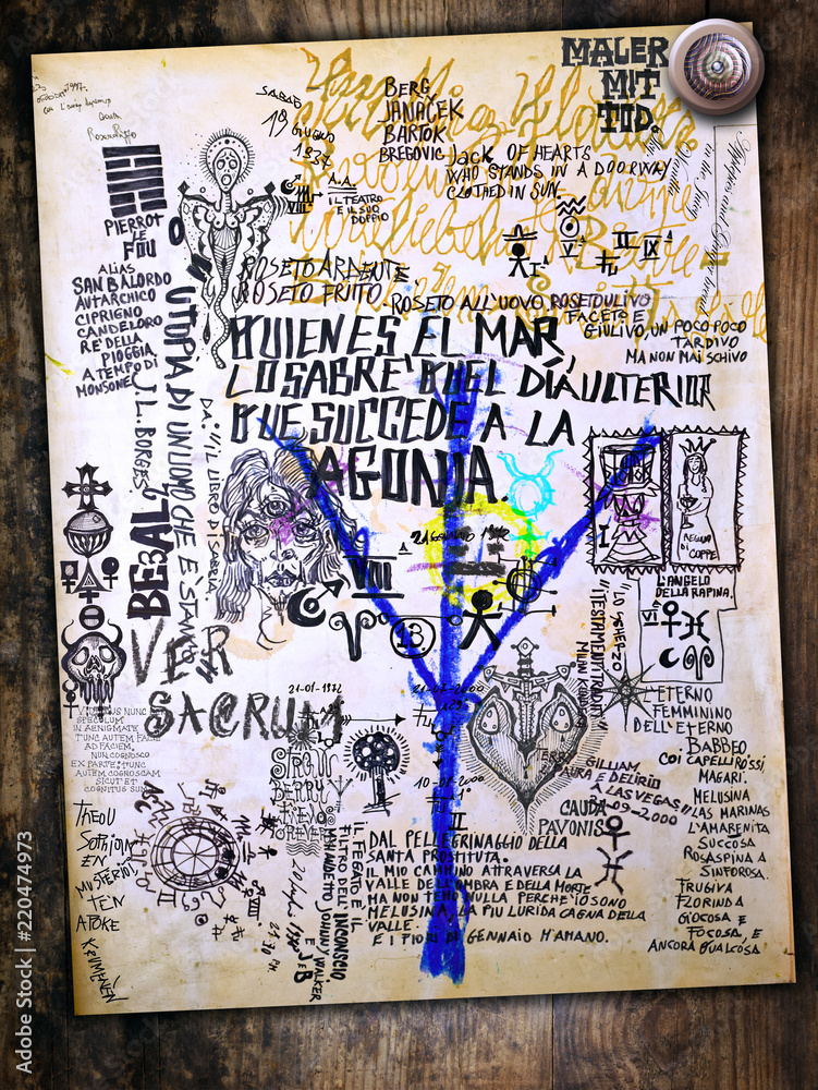 Door Stickers Manoscritti Disegni E Schizzi Con Segni E Simboli Esoterici Astrologici E Alchemici Nikkel Art