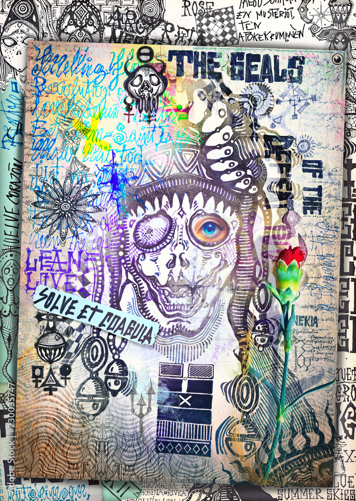 Contour Cut Stickers Misteriosi Collage Con Joker Schizzi Manoscritti Disegni Simboli Esoterici Astrologici E Alchemici Nikkel Art