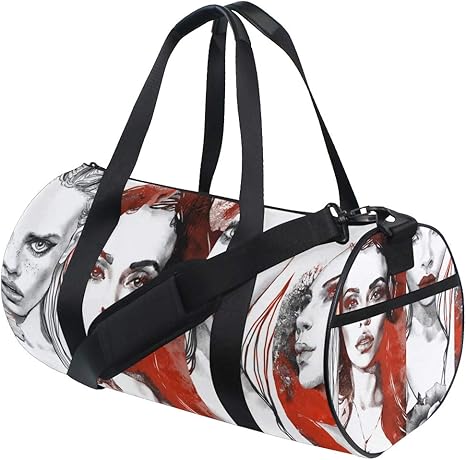 Zomoy Barrel Bag Moda Collage Disegni A Mano Libera Volti Femminili Nuova Borsa Sportiva Cilindro Da Stampa Borse Da Fitness Borsa Da Viaggio In Tela Bagagli Amazon It Sport E Tempo Libero