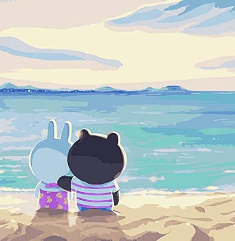 Senza Telaio Pooh Cuccioli Conigli Guarda Il Mare Guardando Il Tramonto Guardando La Sera Fai Da Te La Pittura Disegno Su Stoffa Dipingere Per Numeri 40x50cm Amazon It Casa E Cucina