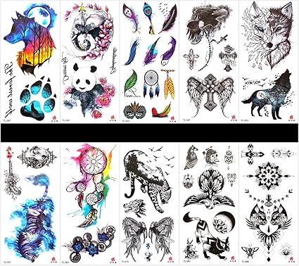 Interookie 10pcs Fake Tattoo Stickers Lupo Tatuaggi Temporanei In One Colli Disegni Misti Piuma Croce Tigre Lupo Panda Leopardo Fox Totem Ecc Amazon It Bellezza