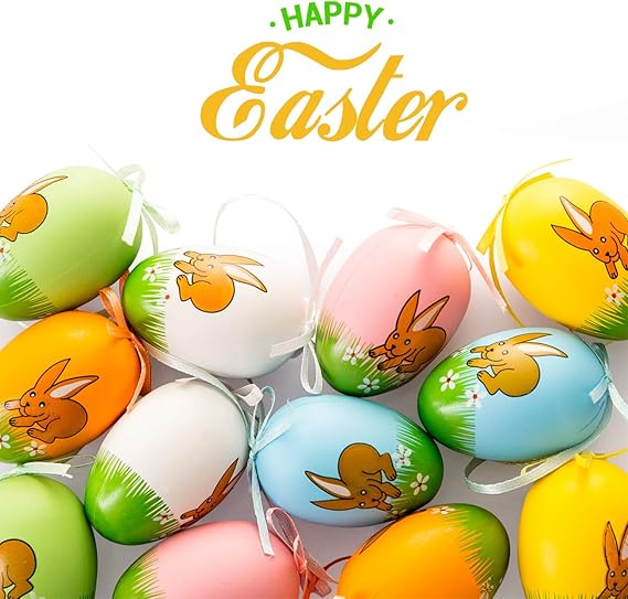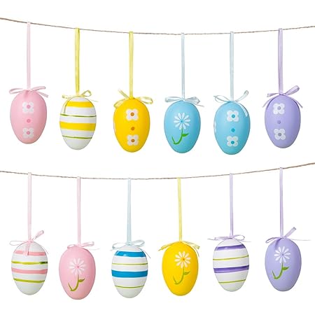 4x6cm Naler Set Di 12 Uova Pasquali Colorate Finte Uova Da Appendere Pasquali Uova Con Disegno Di Coniglio Decorazioni Di Festa Pasqua Decorazioni Per Interni Addobbi E Decorazioni Per Ricorrenze