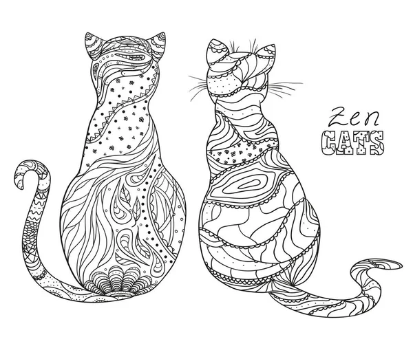 Disegno Zen Gatti Giapponese Zen Tradizionale Mano Vettore Stile Inchiostro Gatti Carino Divertente Cartone Canstock