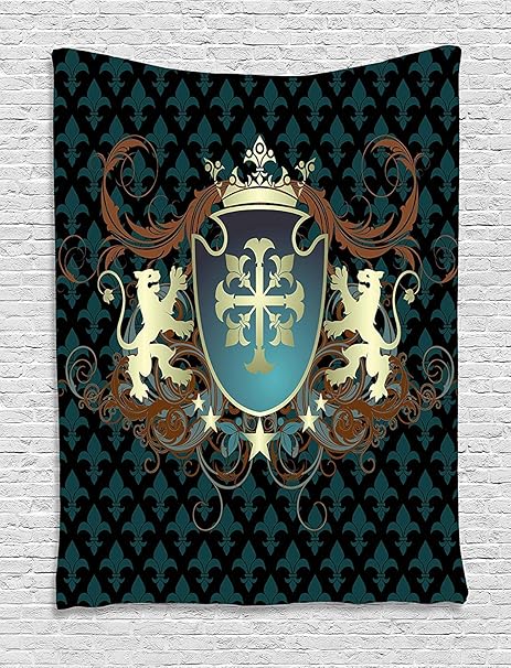 Soefipok Arazzo Medievale Disegno Araldico Dal Medioevo Stemma Corona Leoni E Swirls Appeso A Muro Per Camera Da Letto Soggiorno Dormitorio Amazon It Casa E Cucina