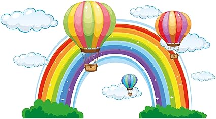 Adesivo Murale Camera Per Bambini Arcobaleno Con Mongolfiere Nuvole E Prato Bam Amazon It Prima Infanzia