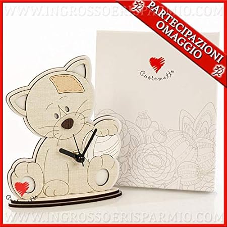 Cuorematto Orologio Da Tavolo In Legno A Forma Di Gattino Con Gomitolo Dai Colori Neutri Bomboniere Originali Battesimo Maschio Femmina Con Scatola Regalo Inclusa Con Confezione Panna Amazon It Casa E Cucina