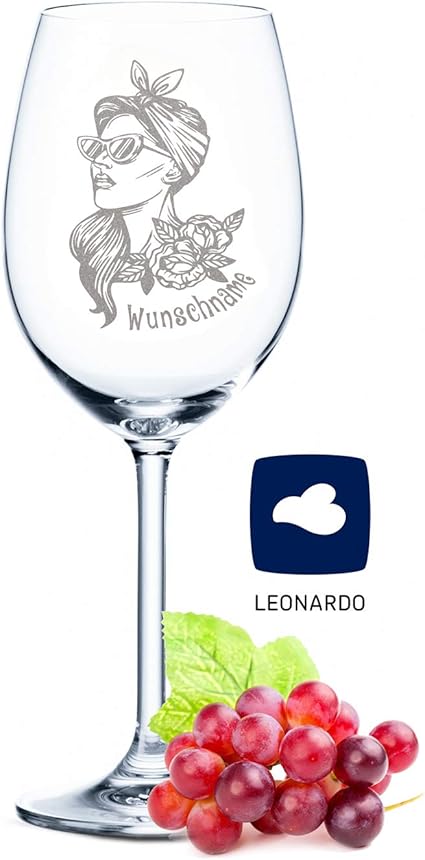 Leonardo Rockabilly Girl Bicchiere Da Vino Xl Con Nome Inciso Idea Regalo Molto Originale Per Il Compleanno Per Vino Rosso E Vino Bianco Incisione Al Laser Di Alta Qualita Amazon It Casa E