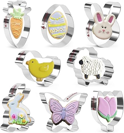 Kaishane Set Di Formine Per Biscotti Pasquali Tagliapasta Per Uova Faccia Di Coniglio Farfalla Fiore Pulcino Pecora 8 Pezzi Per La Festa Di Pasqua Amazon It Casa E Cucina